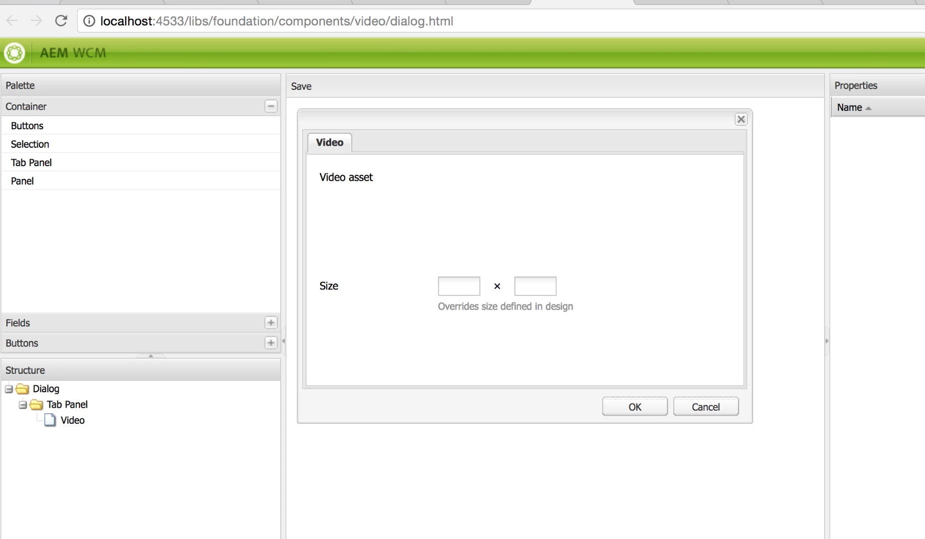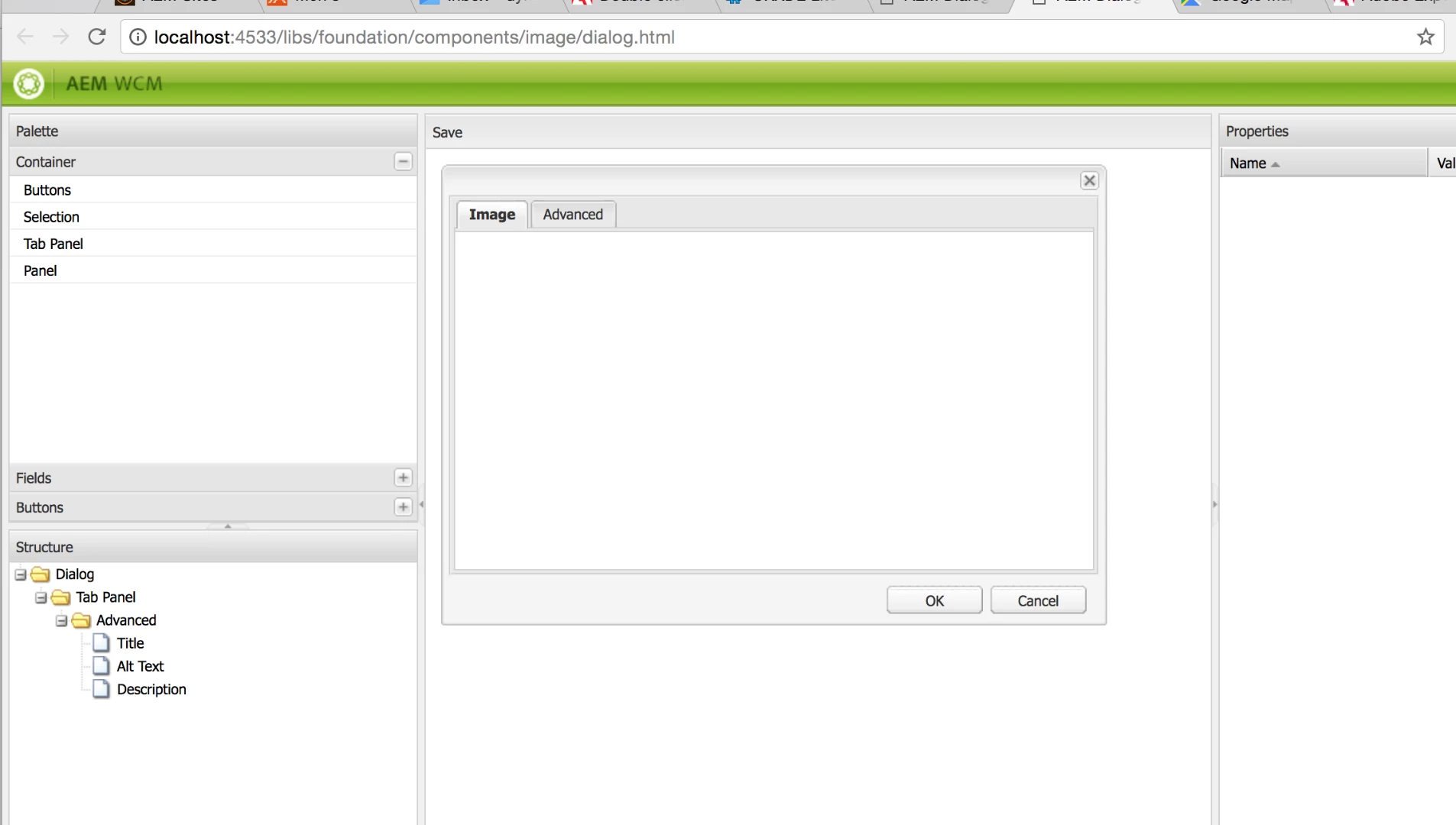 If we double click on the classic dialog icon in the component node structure in crxde, a page opens up in a new tab where we can see the dialog layout.