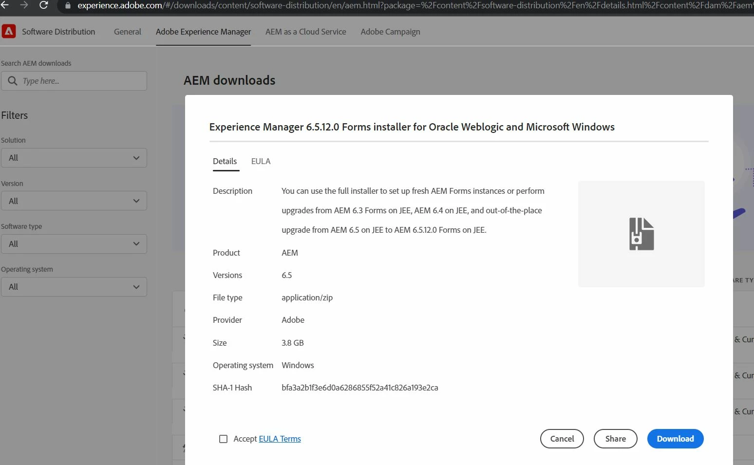 Download the AEM Forms JEE Trail or Developer Version for POC