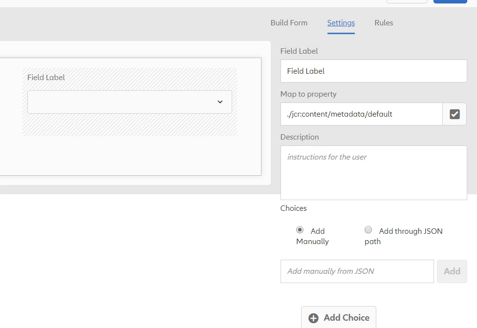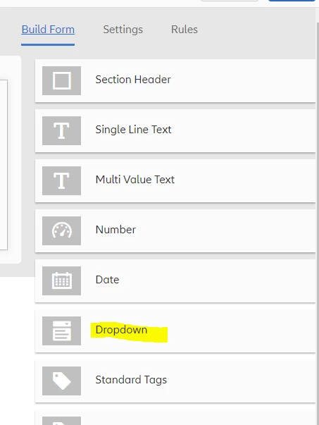 Drop-down in Assets Metadata Profile form