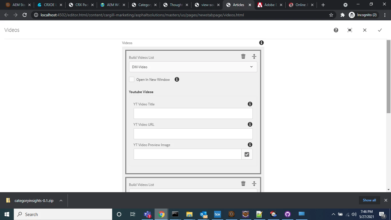 fieldLabel="Build Videos List"