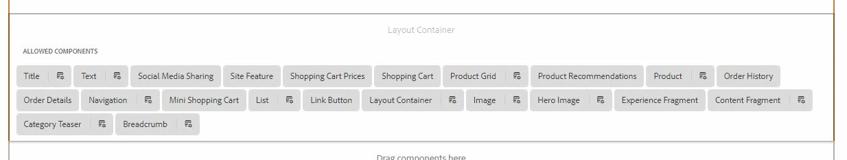 In 6.4 editable templates structure mode, allowed components used to show all the components whatever we configure in policies.