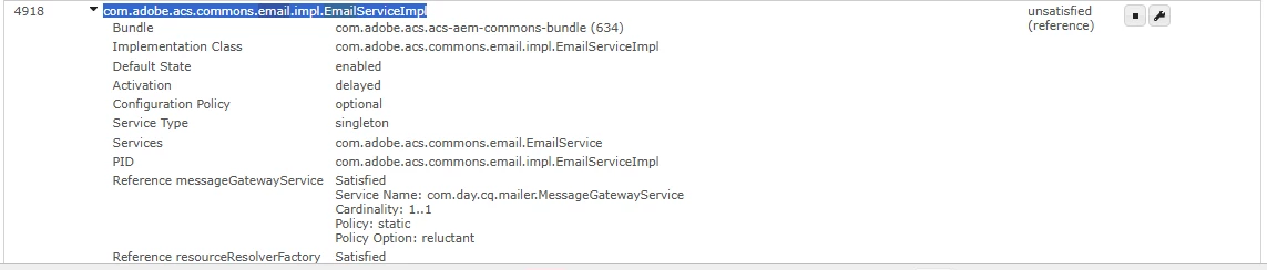 We recently upgraded to aem SP 6.22.0 and acs commons 6.10.0. Post that I can see acs commons email service is unsatisfied.