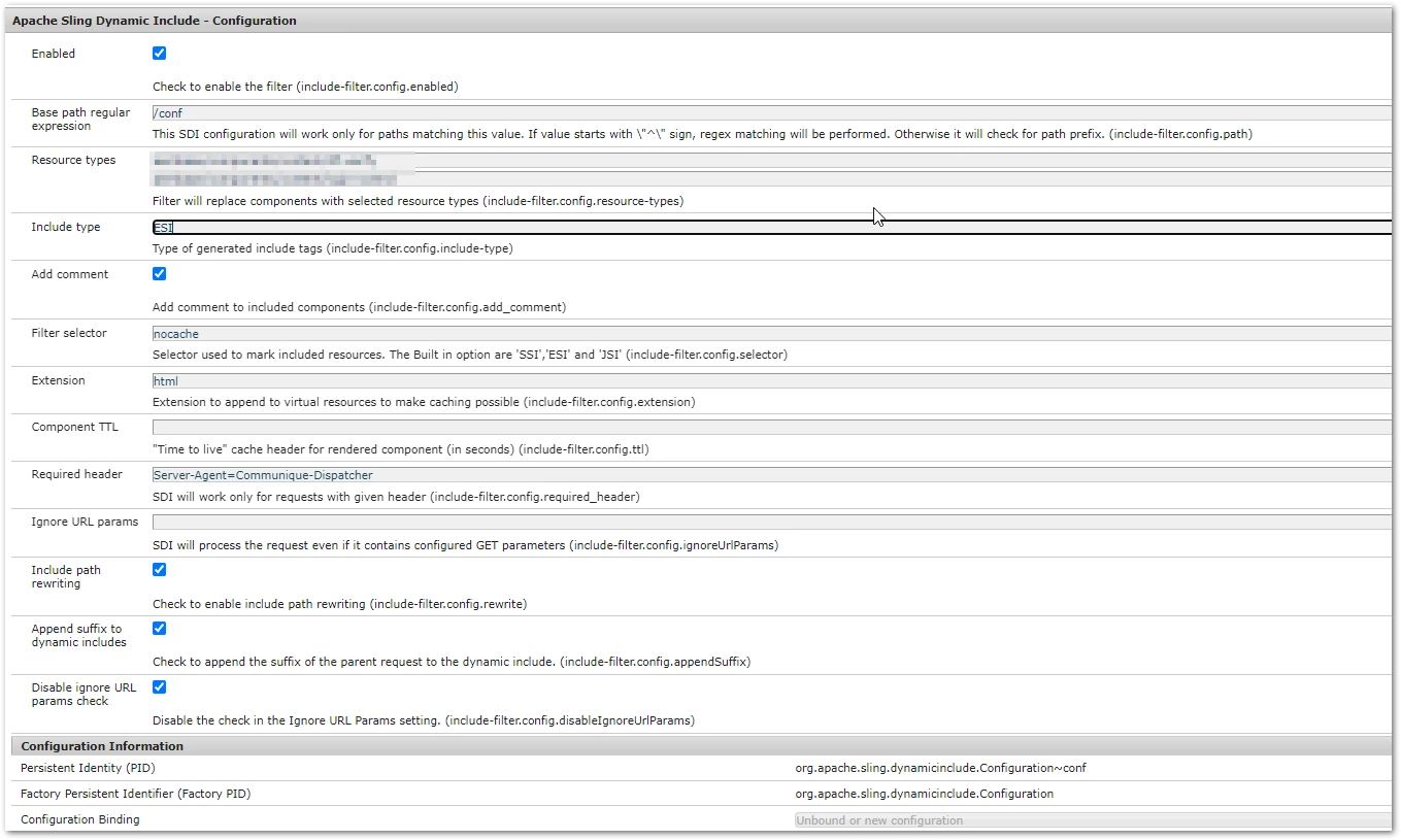 Enabling Sling Dynamic Include (SDI) with Edge Side Includes (ESI) result to a null request.getParameter value from model
