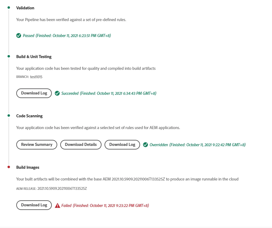 when I build deployment using pipeline in Cloud Manager,