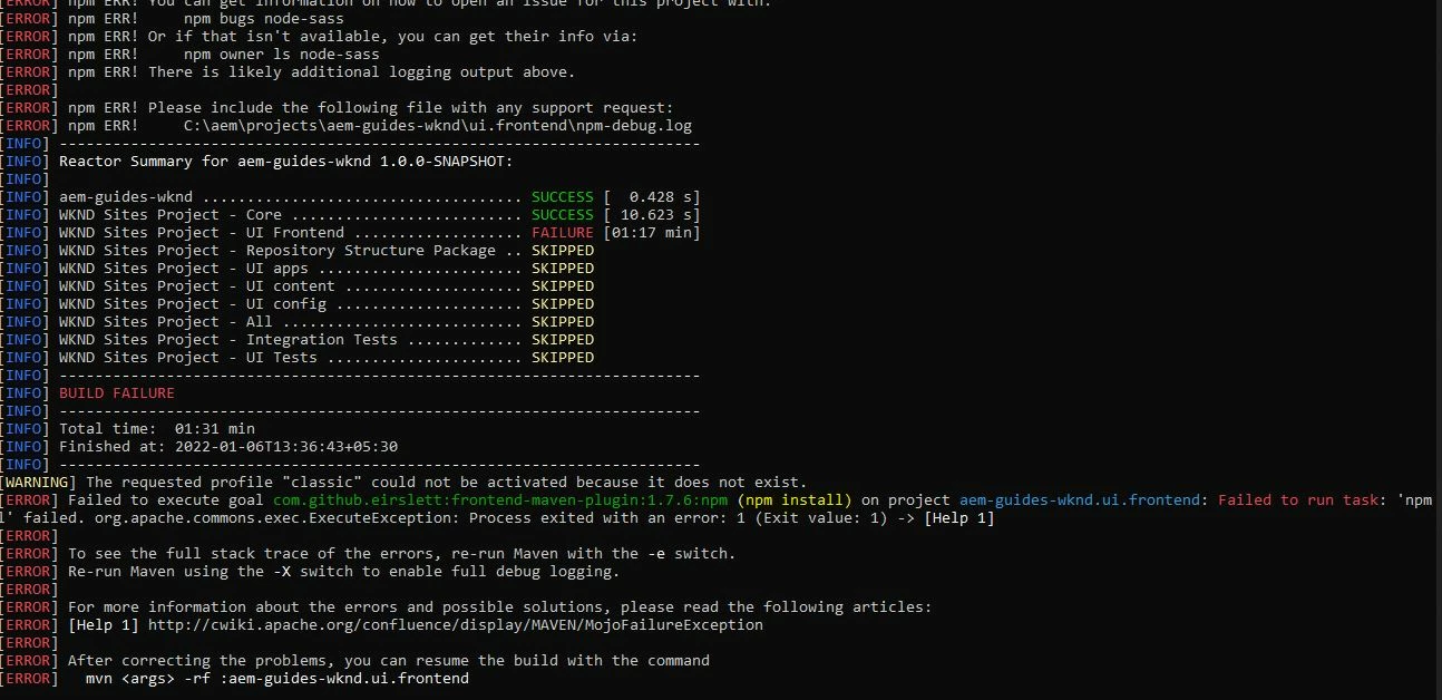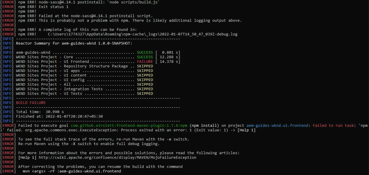 error while installing the maven build AEM project.(mvn clean install) | Community
