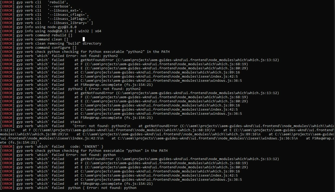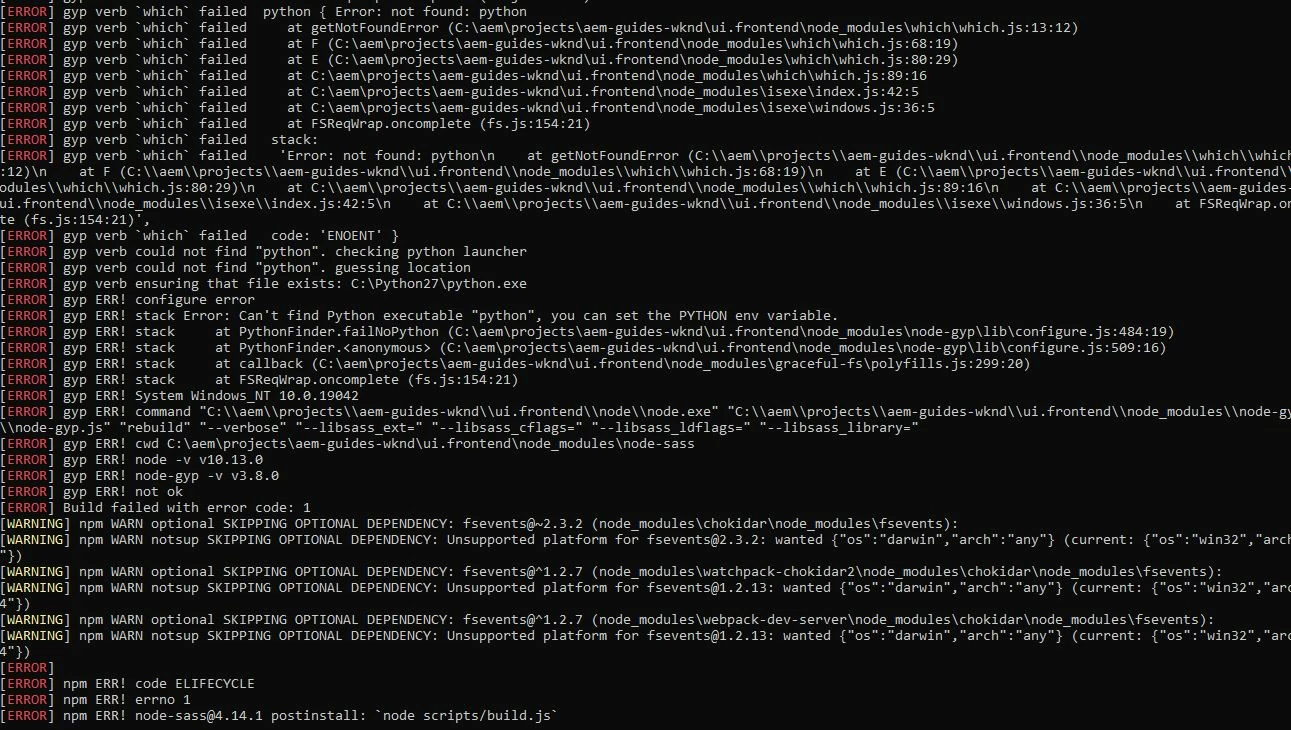 I checked the node and npm versions inside ../ui.frontend/node  the versions were are as follows