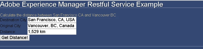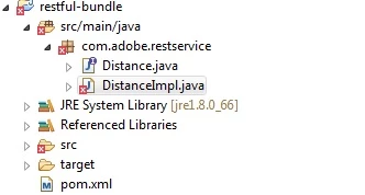 An error occurred at line: 20 in the jsp file: /apps/dev-sandbox/components/restService/query.json.jsp com.adobe.restservice.Distance cannot be resolved to a type 17: String filter = request.getParameter("filter"); 18: 19: // Instatiate an instance of the appropriate service using Sling 20: com.adobe.restservice.Distance googleTagService = sling.getService(com.adobe.restservice.Distance.class); 21: 22: // Invoke the service 23: String jsonResponse = googleTagService.getDistance() ; at org.apache.sling.scripting.core.impl.DefaultSlingScript.call(DefaultSlingScript.java:388) at org.apache.sling.scripting.core.impl.DefaultSlingScript.eval(DefaultSlingScript.java:171) at org.apache.sling.scripting.core.impl.DefaultSlingScript.service(DefaultSlingScript.java:463) at org.apache.sling.engine.impl.request.RequestData.service(RequestData.java:508) at org.apache.sling.engine.impl.filter.SlingComponentFilterChain.render(SlingComponentFilterChain.java:45) at org.apache.sling.engine.impl.filter.AbstractSlingFilterChain.doFilter(AbstractSlingFilterChain.java:64) at com.day.cq.wcm.core.impl.WCMDebugFilter.doFilterWithErrorHandling(WCMDebugFilter.java:182) at com.day.cq.wcm.core.impl.WCMDebugFilter.doFilter(WCMDebugFilter.java:149) at org.apache.sling.engine.impl.filter.AbstractSlingFilterChain.doFilter(AbstractSlingFilterChain.java:60) at com.day.cq.wcm.core.impl.WCMComponentFilter.filterRootInclude(WCMComponentFilter.java:356) at com.day.cq.wcm.core.impl.WCMComponentFilter.doFilter(WCMComponentFilter.java:168) at org.apache.sling.engine.impl.filter.AbstractSlingFilterChain.doFilter(AbstractSlingFilterChain.java:60) at com.day.cq.personalization.impl.TargetComponentFilter.doFilter(TargetComponentFilter.java:96) at org.apache.sling.engine.impl.filter.AbstractSlingFilterChain.doFilter(AbstractSlingFilterChain.java:60) at org.apache.sling.engine.impl.SlingRequestProcessorImpl.processComponent(SlingRequestProcessorImpl.java:254) at org.apache.sling.engine.impl.filter.RequestSlingFilterChain.render(RequestSlingFilterChain.java:49) at org.apache.sling.engine.impl.filter.AbstractSlingFilterChain.doFilter(AbstractSlingFilterChain.java:64) at com.day.cq.wcm.core.impl.AuthoringUIModeServiceImpl.doFilter(AuthoringUIModeServiceImpl.java:301)-------------