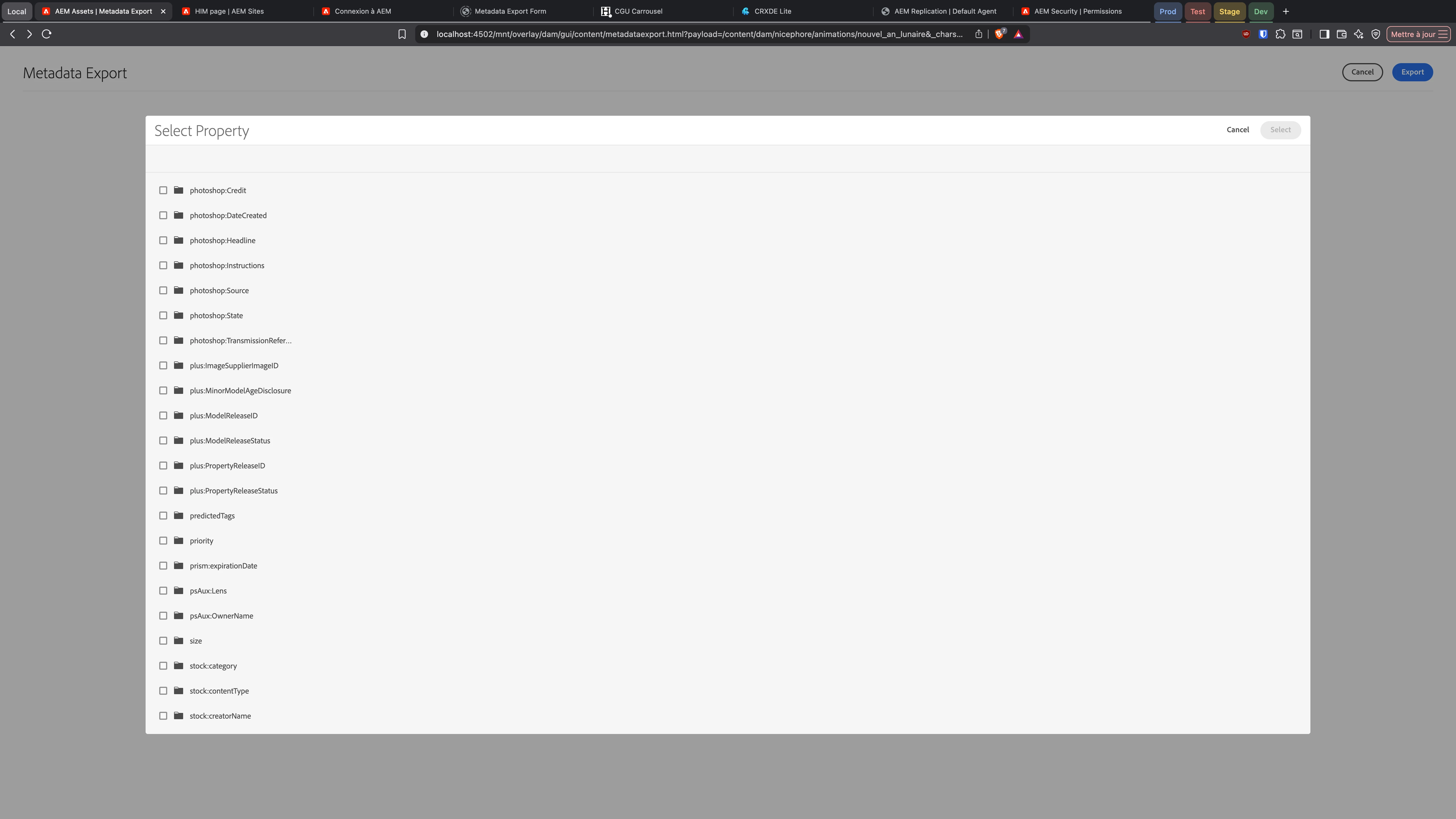 | Use-case: | Contributors need to export assets metadata which are on the jcr:content node like onTime or offTime, then modify these values and update them massively in the dam |