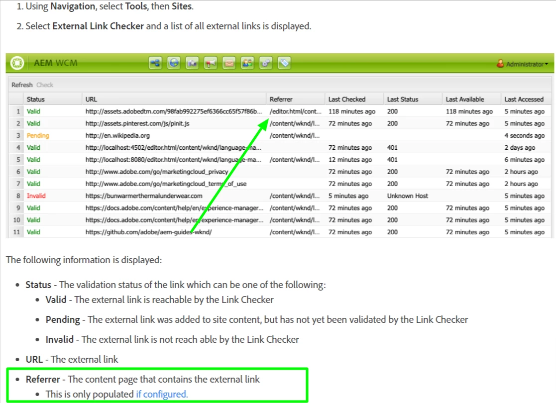 If I have a link in the external link checker, how can I know from which page that link is being called?