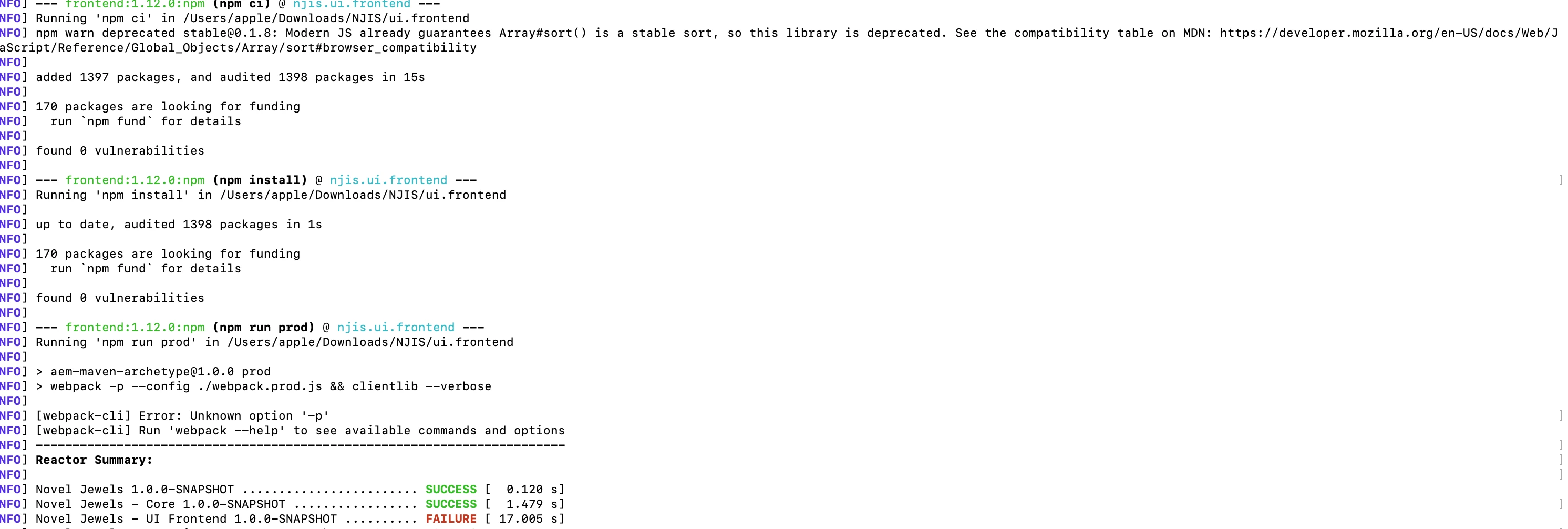 [ERROR] Failed to execute goal com.github.eirslett:frontend-maven-plugin:1.12.0:npm (npm run prod) on project ui.frontend: Failed to run task: 'npm run prod' failed. org.apache.commons.exec.ExecuteException: Process exited with an error: 2 (Exit value: 2) -> [Help 1]