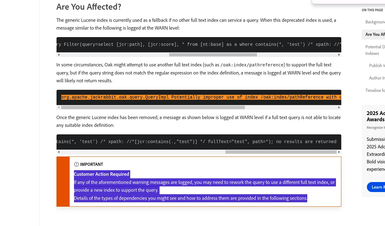 org.apache.jackrabbit.oak.query.QueryImpl Potentially improper use of index /oak:index/pathReference with queryFilterRegex (["']|^)/ to search for value 'is not null'