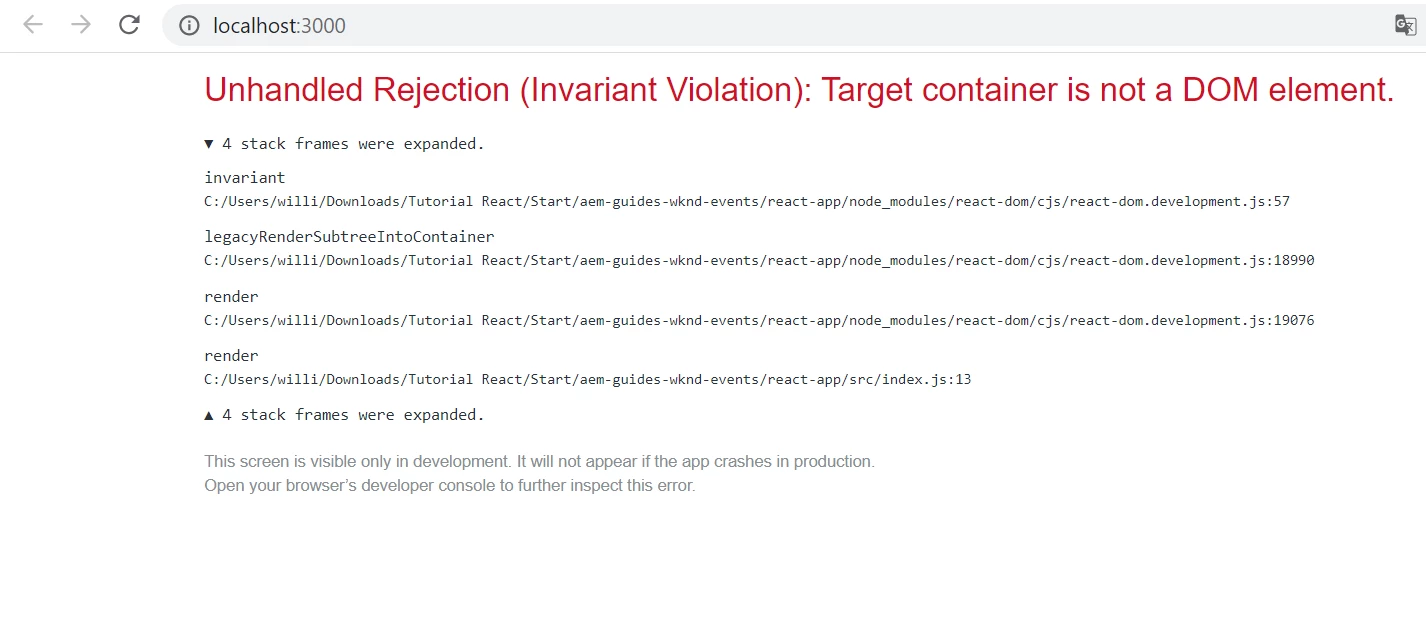 [Getting Started with React and AEM SPA Editor - Chapter 3] - Router error - Target container is not a DOM element.