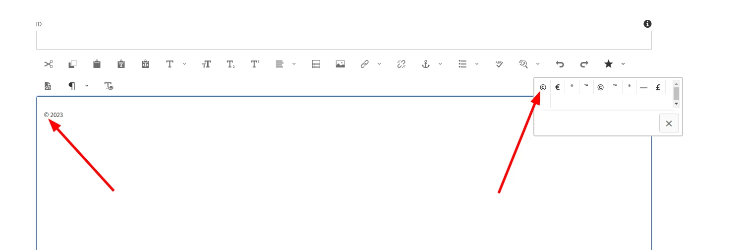 <misctools jcr:primaryType="nt:unstructured" features="*"> <specialCharsConfig jcr:primaryType="nt:unstructured"> <chars jcr:primaryType="nt:unstructured"> <copyright jcr:primaryType="nt:unstructured" entity="&amp;#169;"/> <trademark jcr:primaryType="nt:unstructured" entity="&amp;#8482;"/> <registered jcr:primaryType="nt:unstructured" entity="&amp;#174;"/> <emDash jcr:primaryType="nt:unstructured" entity="&amp;#8212;"/> <pound jcr:primaryType="nt:unstructured" entity="&amp;#163;"/> <nbsp jcr:primaryType="nt:unstructured" entity="&amp;#160;"/> </chars> </specialCharsConfig> </misctools>