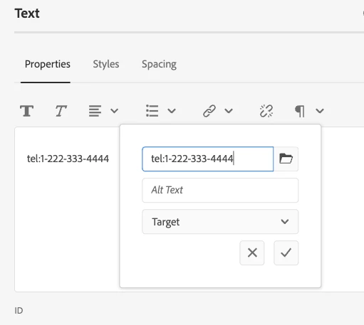 How can we disable Link Checker for phone numbers, in the Text and Title component?