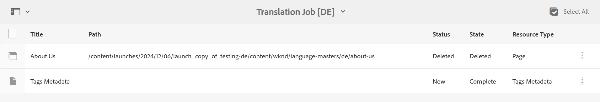 On ootb project I can see launched and tag metadata but unable to download XML I cant see XML to download If XML downloads may be I can see is tags coming on tagmetadat fileThe export format already configured through /com.adobe.cq.wcm.translation.impl.TranslationPlatformConfigurationImpl configuration.