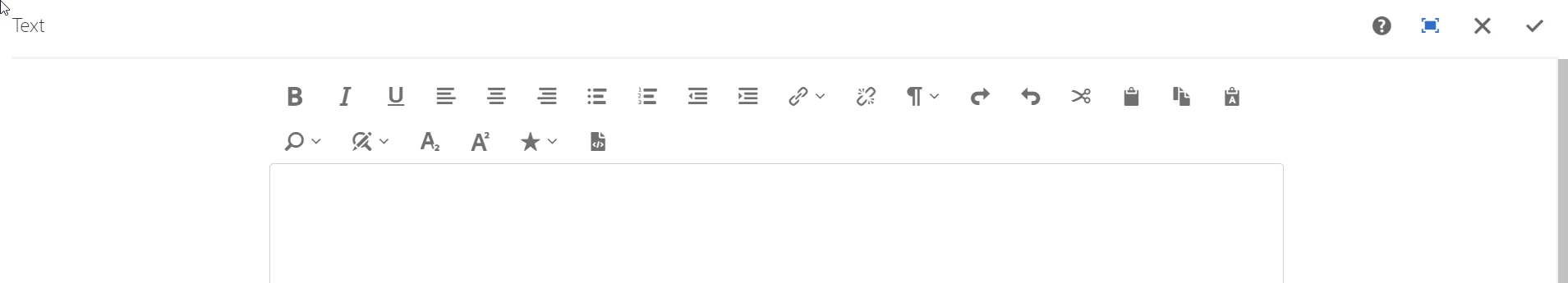 toolbar="[format#bold,format#italic,format#underline,#justify,#lists,links#modifylink,links#unlink,#paraformat,#edit,#findreplace,#misctools,#subsuperscript,undo#undo,undo#redo]">