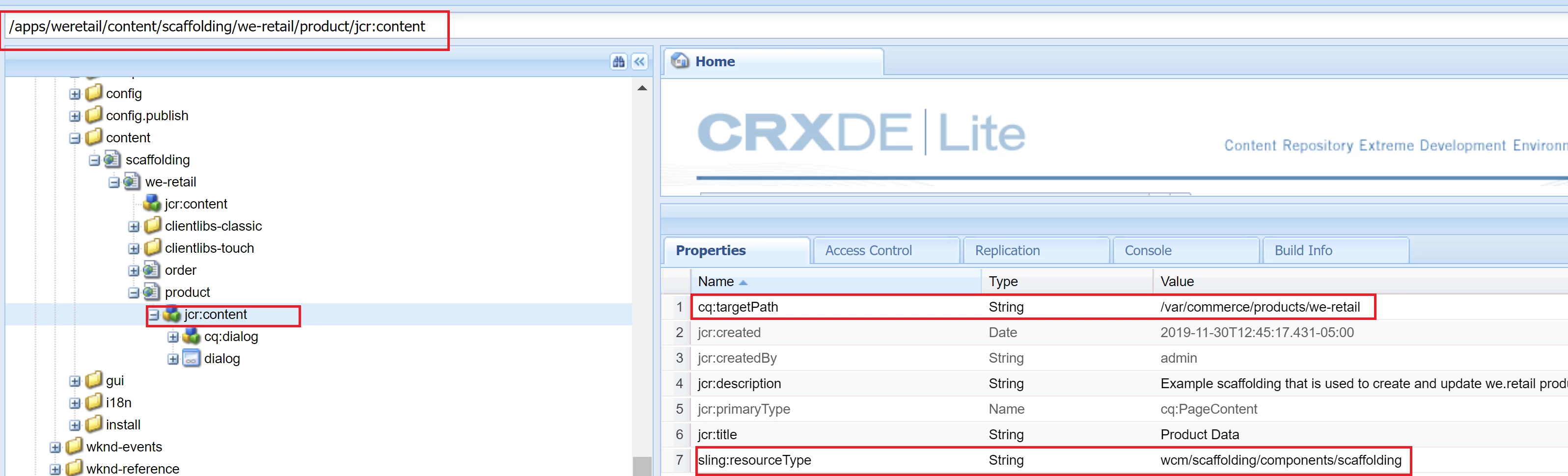 "No scaffold definition found for /var/commerce/products"