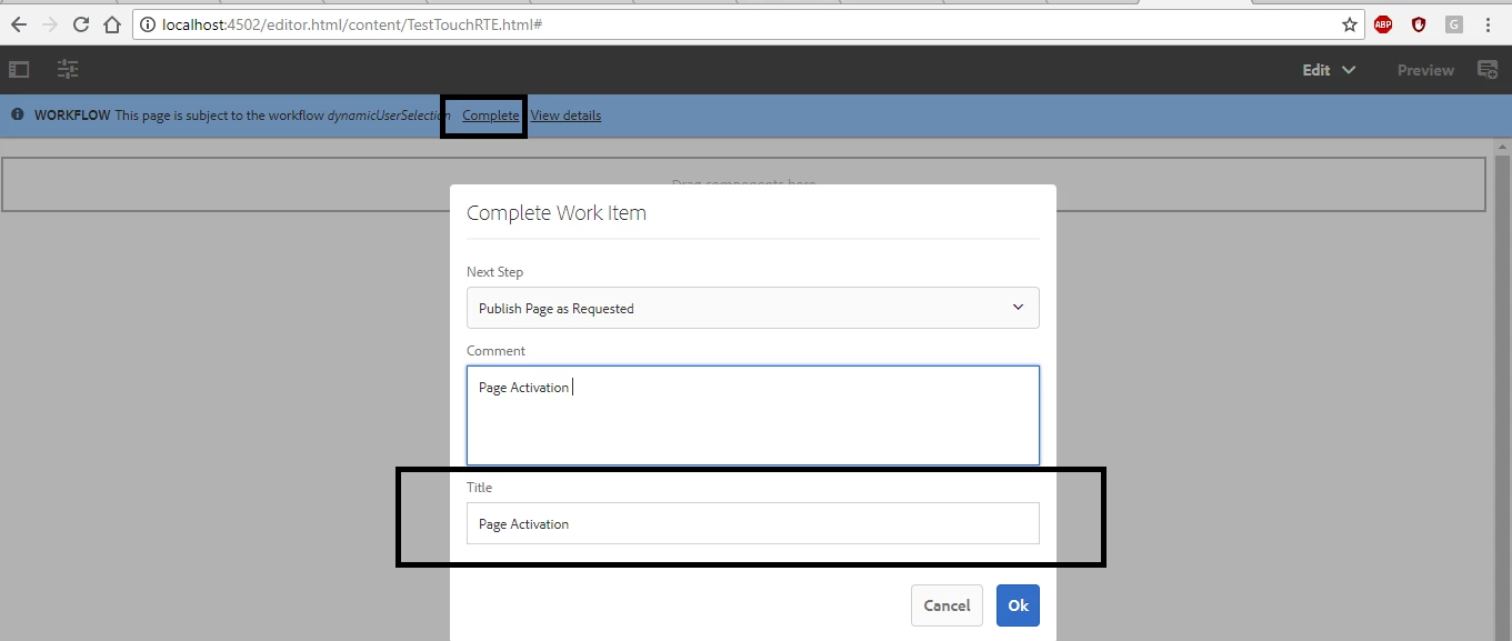 I am overriding workitemcompletedialog /libs to /apps path.