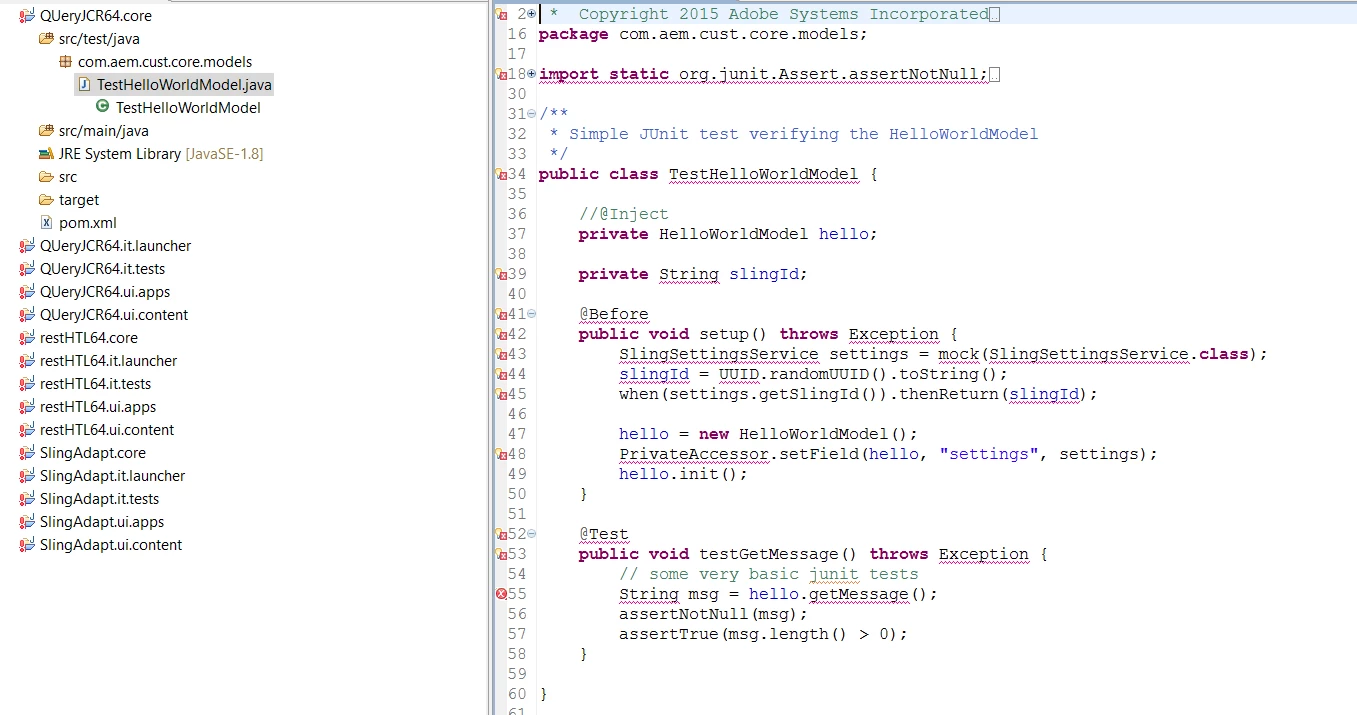 You can use JUNIT code to test application logic here. For example - here a model class.  WHen you build the maven project - you can see the Tests run and the results.