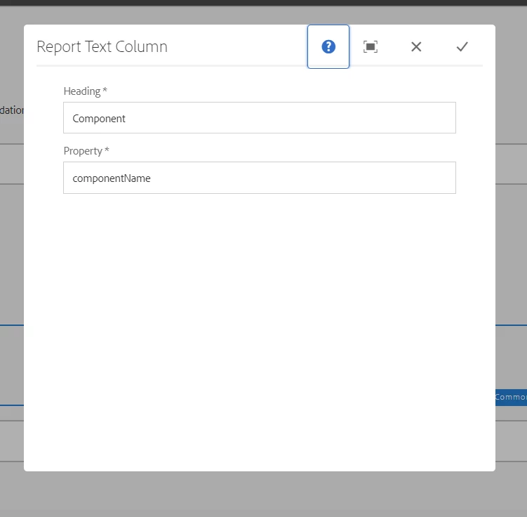In the result, I have added "Report Text Column" and I'm configuring the 'Heading' & 'property'. ex Heading is "Hero Image" & property is "landingHeroImage".