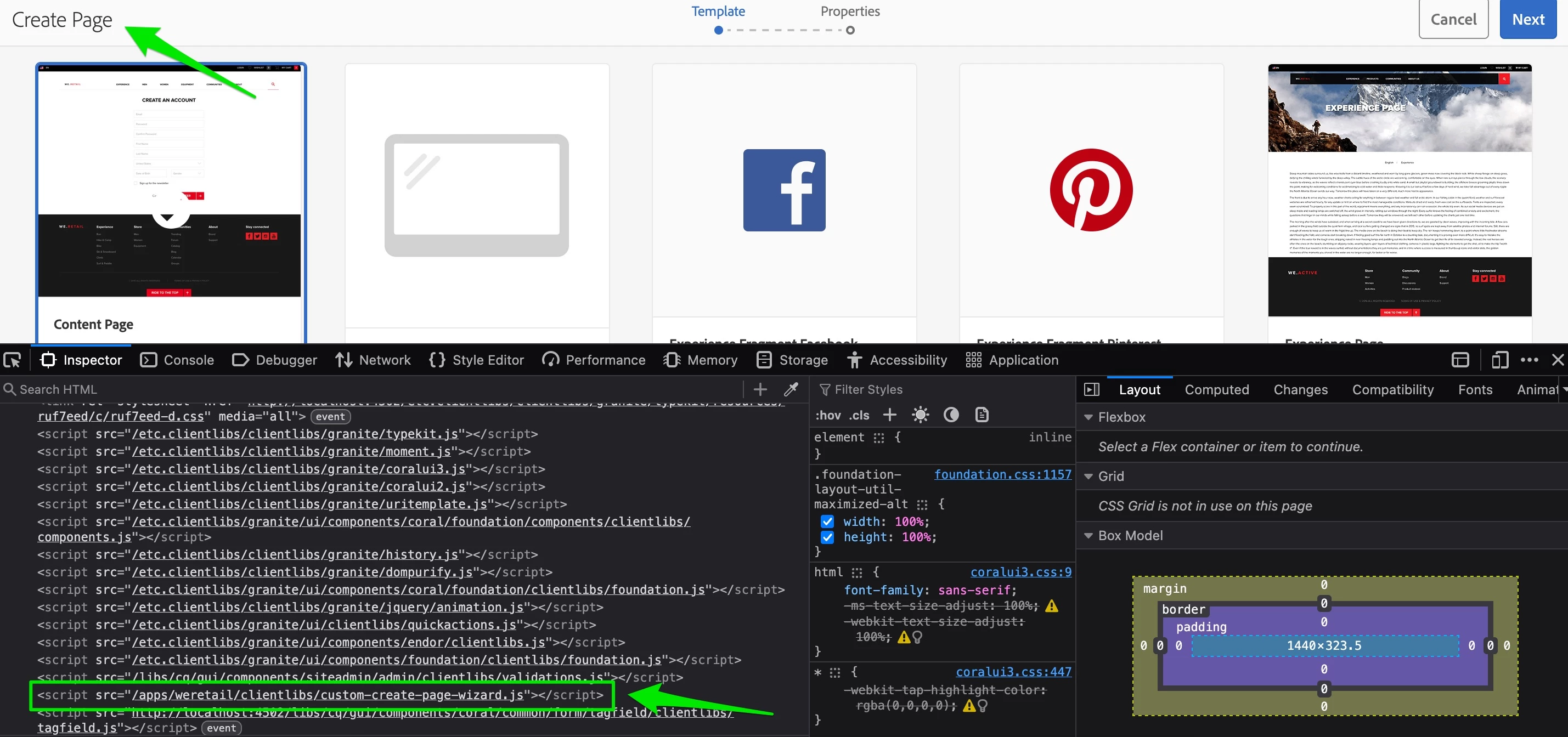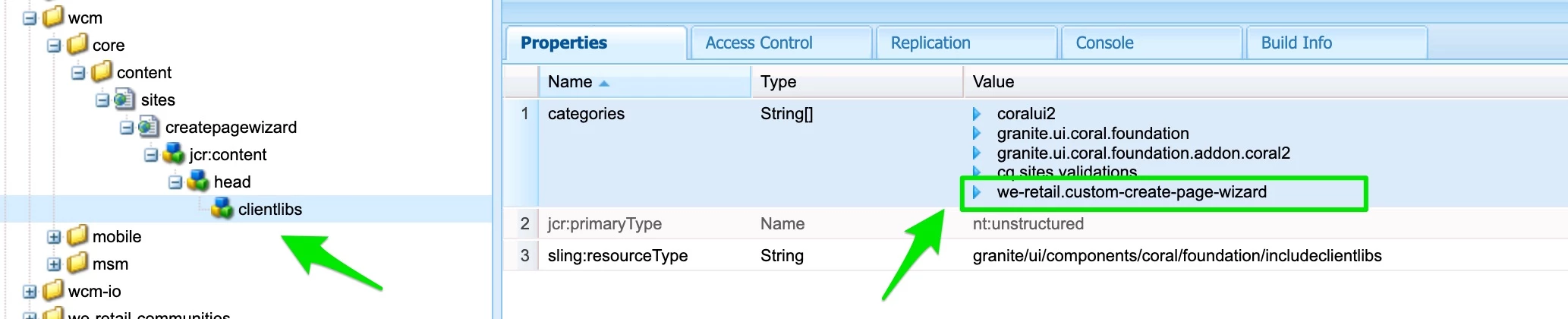 - Overlayed /apps/wcm/core/content/sites/createpagewizard/jcr:content added extraClientlibs to that node, still failed,