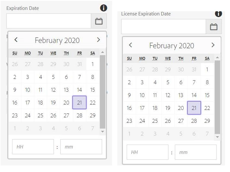 We have to make a condition for the field called Expiration date where the date entered should not exceed the license expiration date field