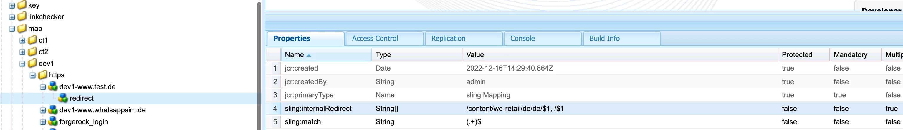 RewriteRule ^/content/we-retail/de/de/(.*.html)$ https://%{SERVER_NAME}/$1 [NE,R=301,L]