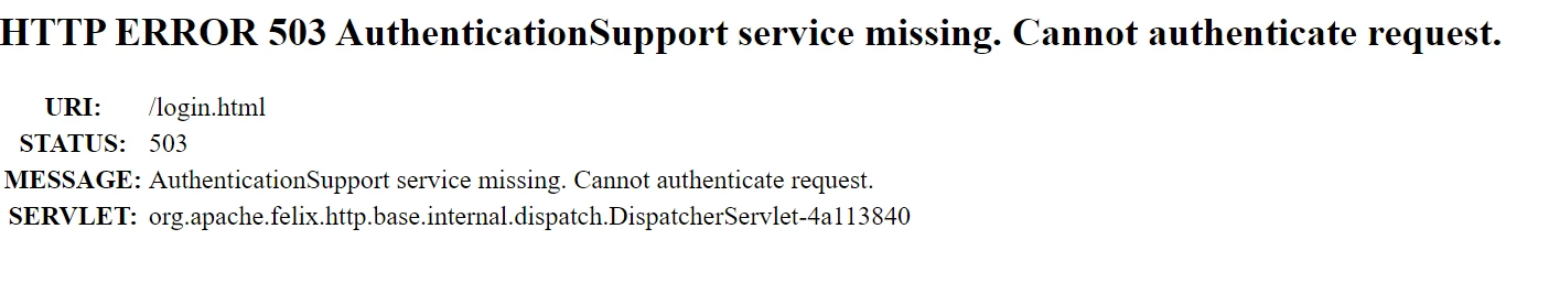 HTTP ERROR 503 AuthenticationSupport service missing. Cannot authenticate request.