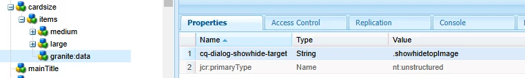 dialog structure, for cardSize node I added granite:datanode