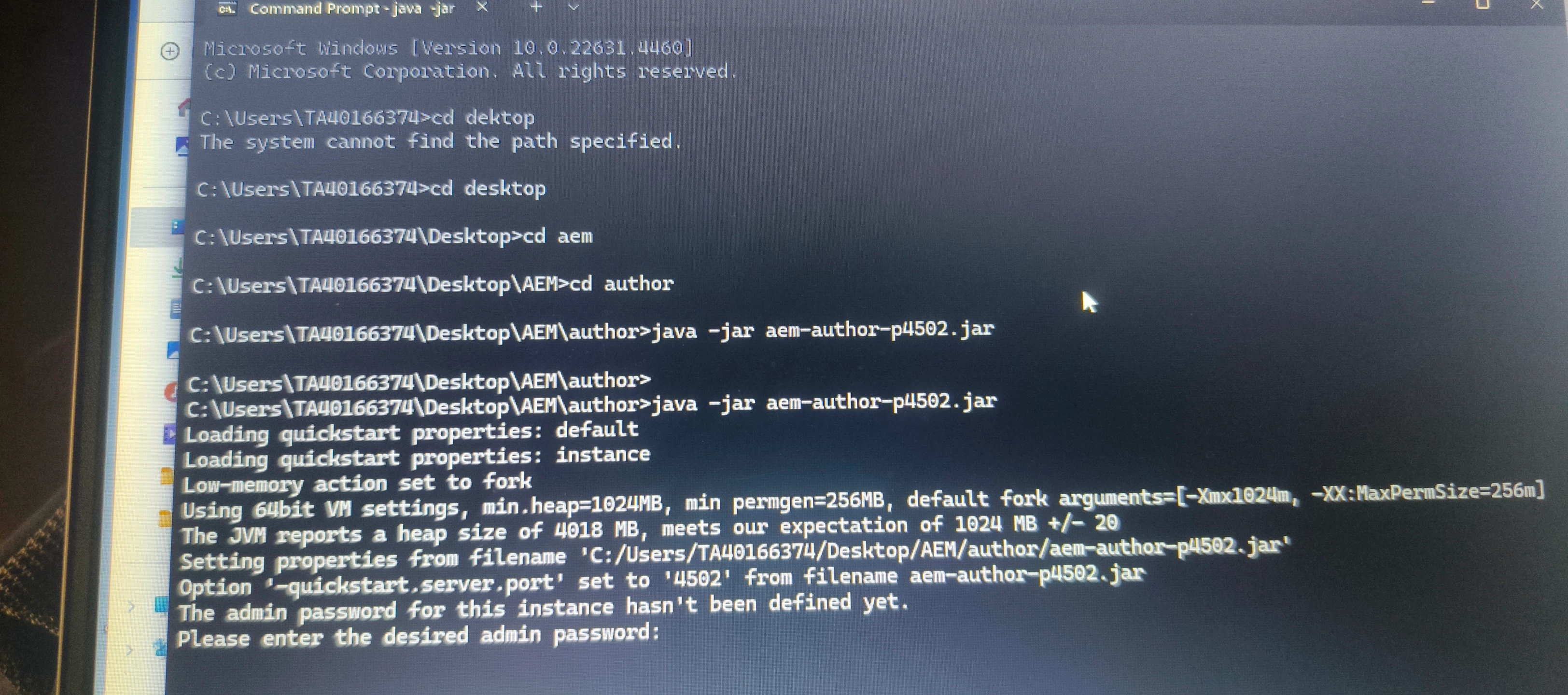 Since you are running AEM jar via command line this triggers automatically giving an option to set your admin password. If you wish to change from admin/admin default setting . You can set any password you wish to have for the admin account and continue