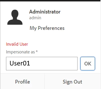 endpoint 'http://mysite.mydomain.com/home/users/d/USERIDCVFBGDNKLO.impersonate.json?_charset_=utf-8&impersonate=NAME&path=%2Fsites.html%2Fcontent%2Fmysite'.