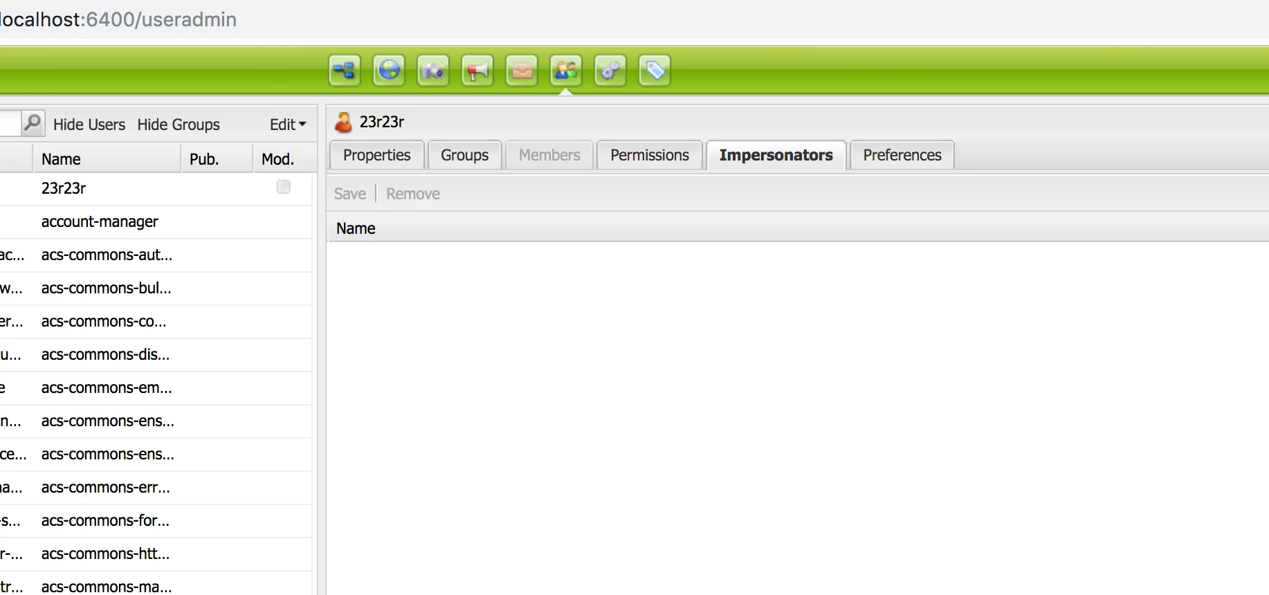 Hello all, we are using the AMS for AEM 6.5. I am trying to test the impersonation, but it doesnt show any users. in /useradmin i made sure admin group has all the Read/Modify/Create/Delete/Read ACL/Edit ACL/Replicate are all checked. Basically this group has access to everything. Now i am an admin in that group and i am trying to impersonate a user with lower level permissions, but i am not able to see the user. What am i doing wrong here.. Also i made sure home/users is checked.