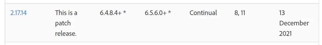 I am using 2.17.14 with AEM 6.5.9 -