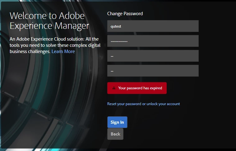 - The message on new password validation error is "Your password has expired".
