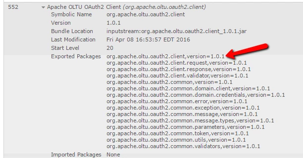 org.apache.oltu.oauth2.client,version=[1.0,2) -- Cannot be resolved