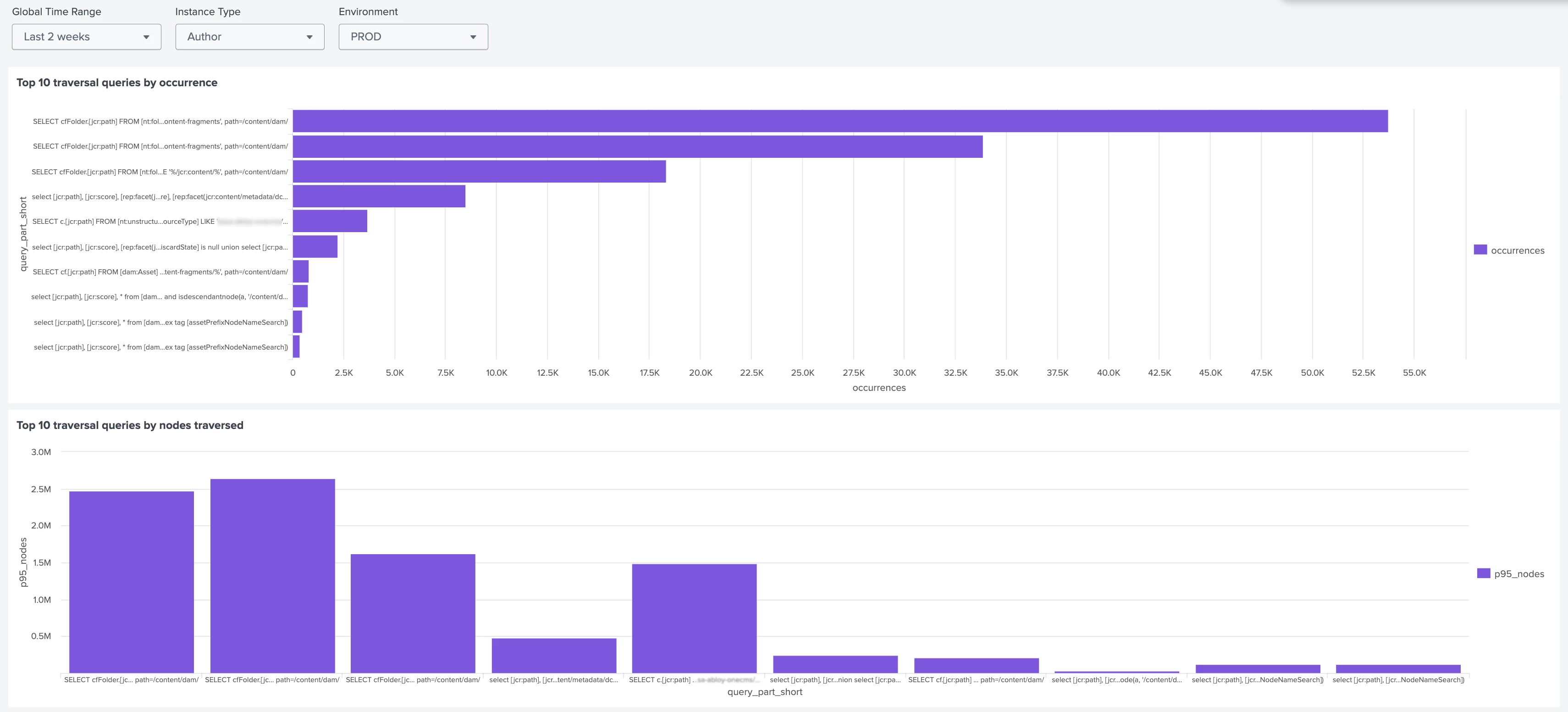 Read the full article on https://meticulous.digital/blog/f/index-traversal-in-aem-a-common-source-of-performance-issues to find out more. Note that the full article includes query samples used to create the Splunk Alerts and Dashboards.