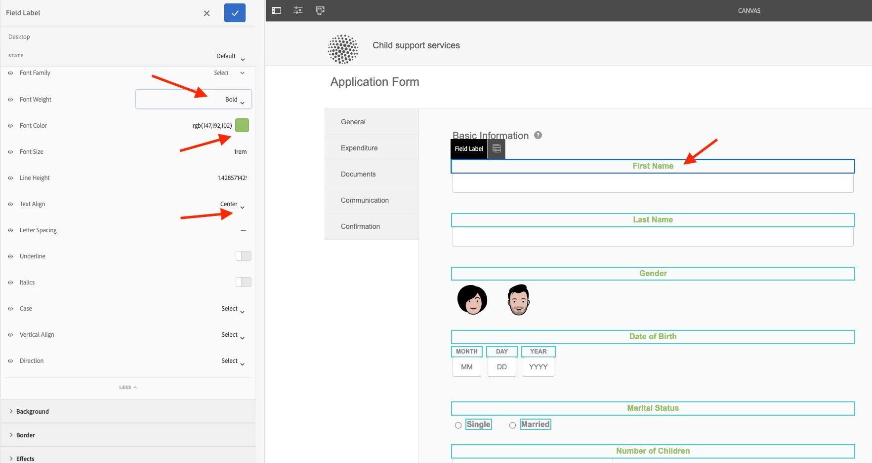 Themes are a set of styles applied to adaptive forms. Theme editor which allows an author to change styles of the form and its components. As an example, see screenshot below where I updated the styles of the label of the textfield component. This is just a simple example, you can do a LOT with the theme editor.