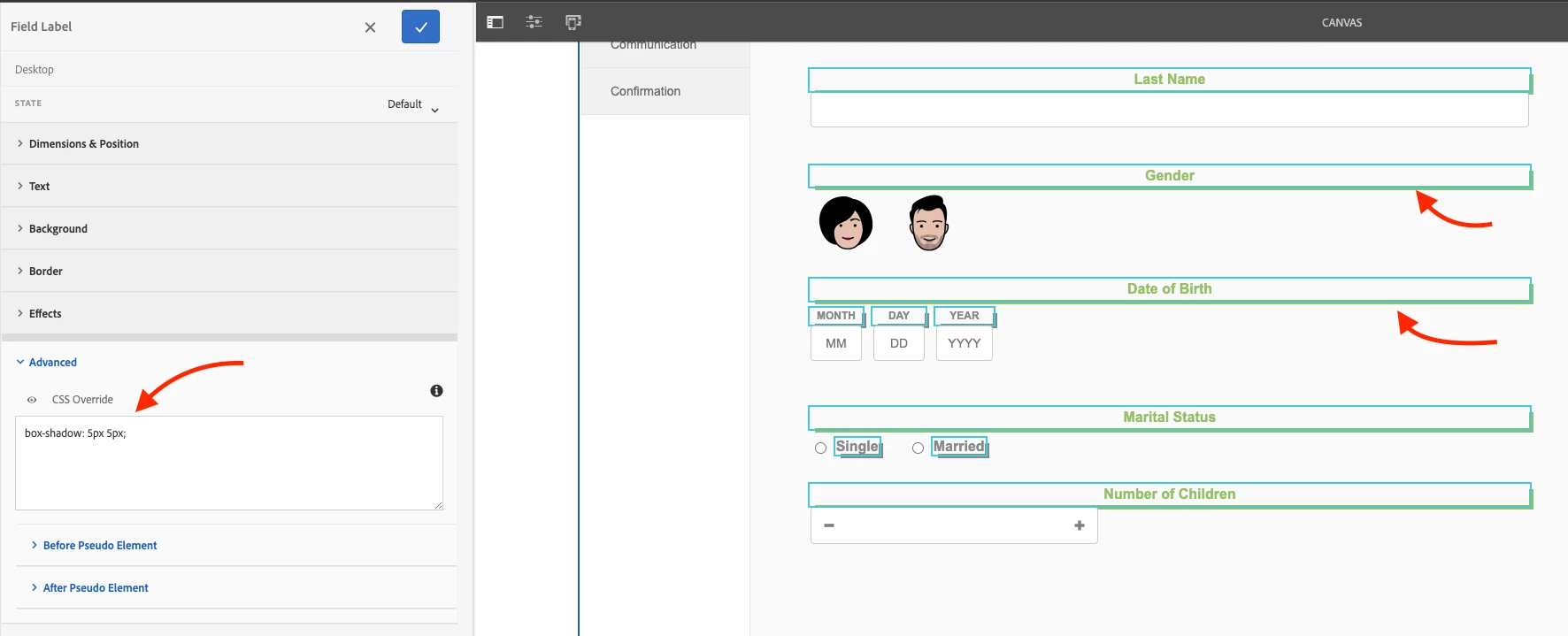 If the GUI provided properties are not sufficient, you can add your own CSS code: