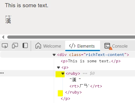 what is the procedure to integrate the <ruby> tag in the richtext component. Is there any custom implementation.