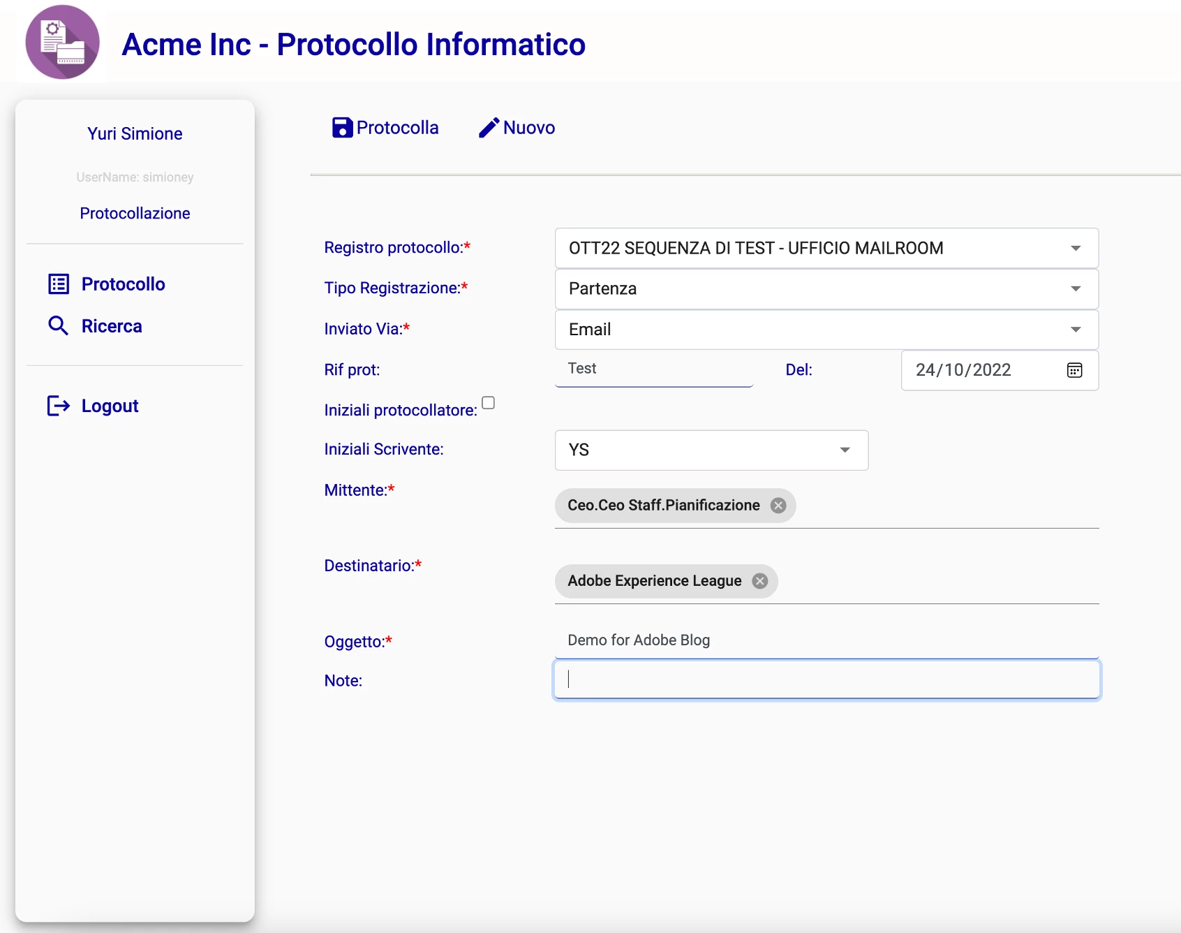 I always desired to propose Adobe AEM as a generic Content Service Platform, to manage all the contents managed by a customer. The level of trust between me and my client gave me the opportunity finally to create an application based on Apache Sling 12. Apache Sling is the open-source core of Adobe AEM. The new Protocollo Informatico covers all the requirements, in fact: