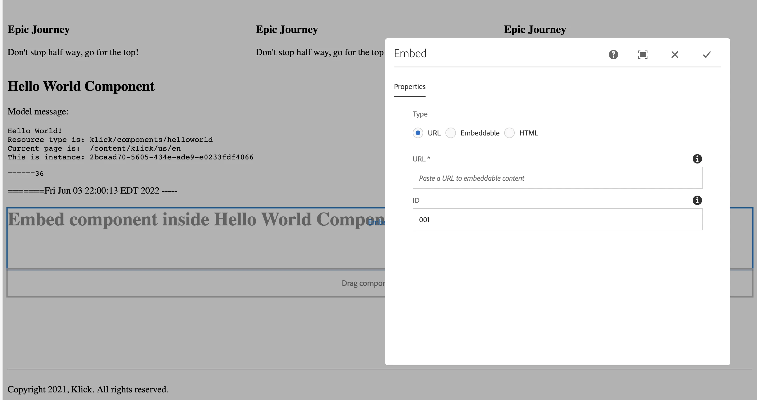 <sly data-sly-resource="${'embed' @resourceType='/apps/site/components/embed'}" />