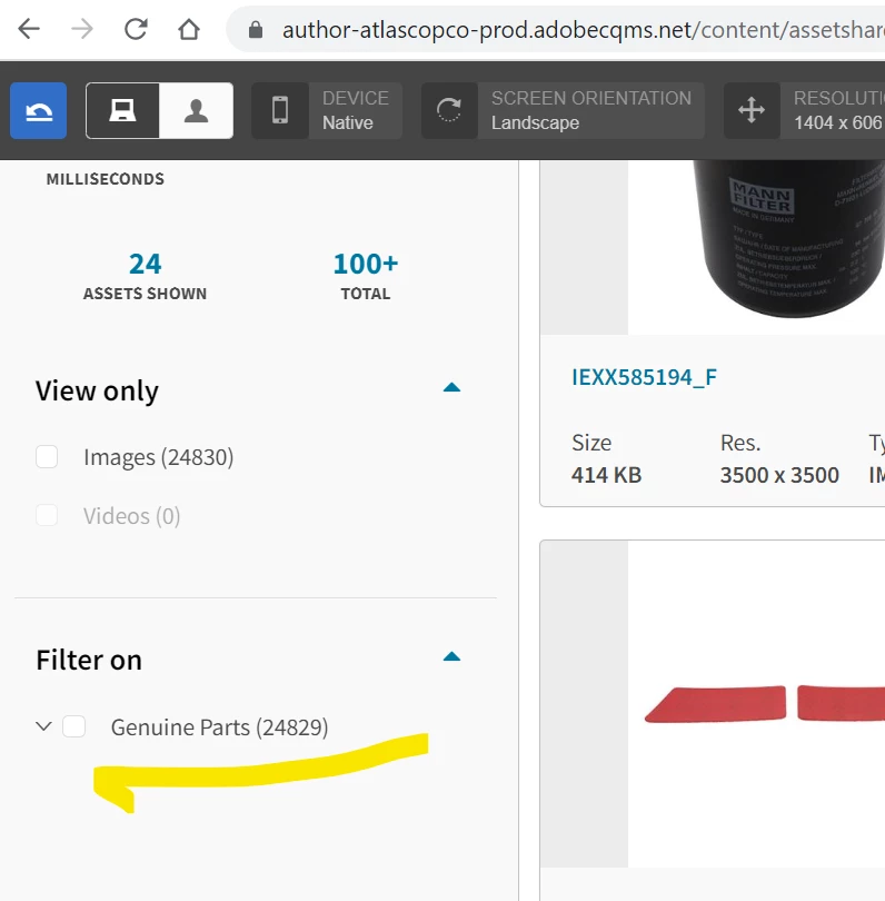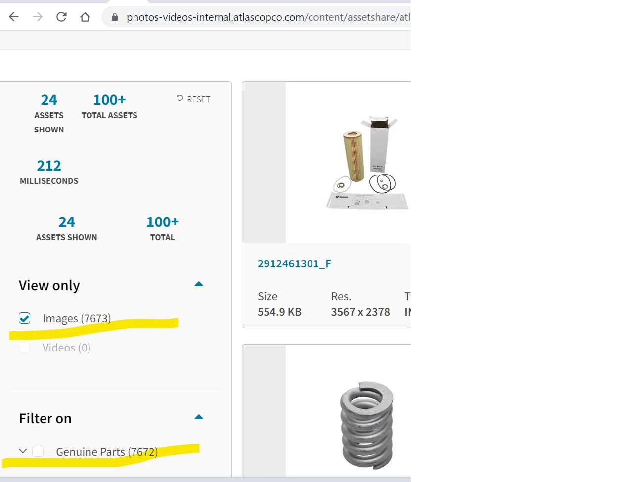 In view as published the count is shwoing as 24000 plus on genuine part filter but on the live site its just showing 7500 plus images.