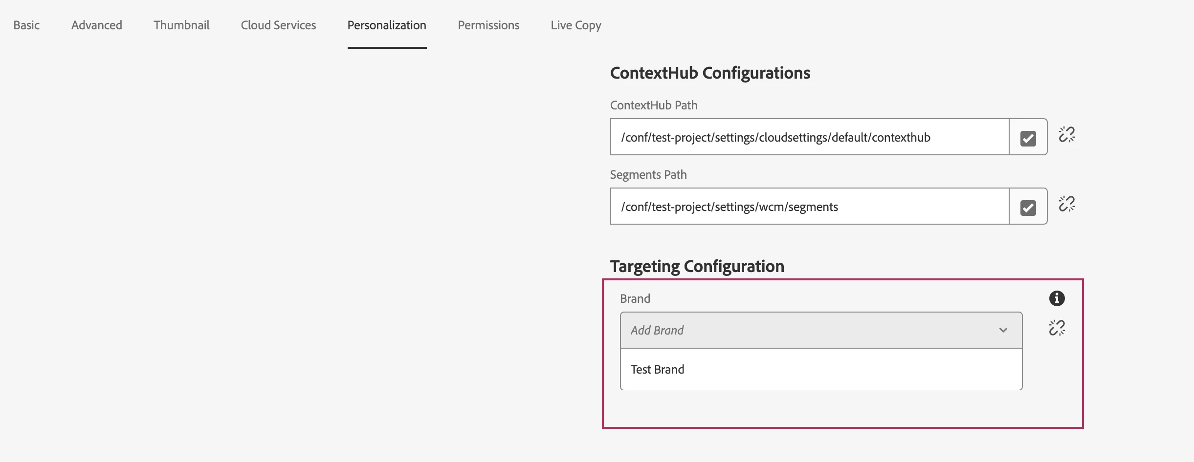 I'm working on AEM Targeting via ContextHub implementation. While updating the config on the root page, I can see the brand listed in the dropdown. However, when I select the brand "Test Brand", the Area reference section is not loading, even though I have created everything as part of the setup. Moreover, we don't need to be part of the "Target Administrators" group, as it is only required for AEM - Target integration and not for ContextHub implementation. Can someone tell me what could be the issue?