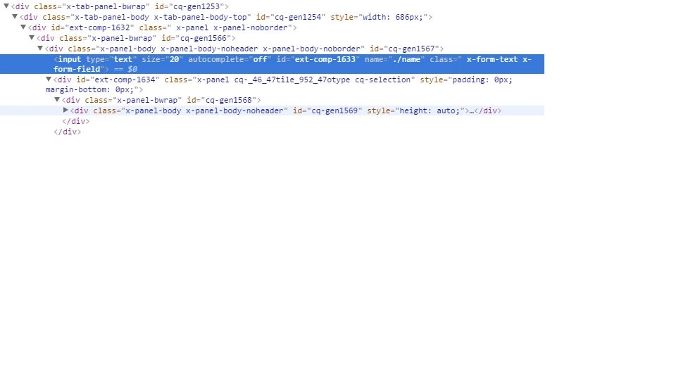 (cq:Widget) tabpanel->cq:WidgetCollection->cq:Panel->cq:WidgetCollection->cq:Widget