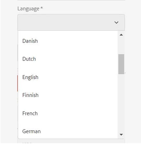 Resource Type used for language field: granite/ui/components/coral/foundation/form/select