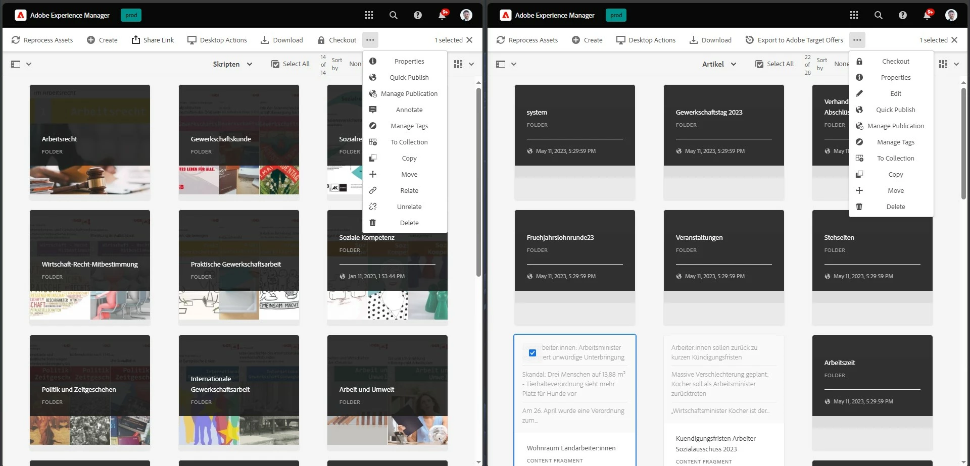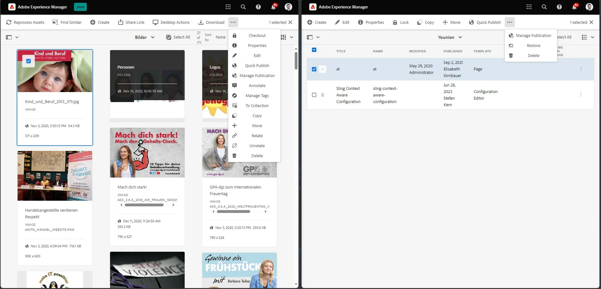| Use-case: | Our users want to work quickly in AEM. However, the inconsistent button order of the menu bar slows them down. We got a number of complaints by our authors regarding the Author instance UI: Authors are irritated by the changing order of buttons throughout the DAM and Sites. |