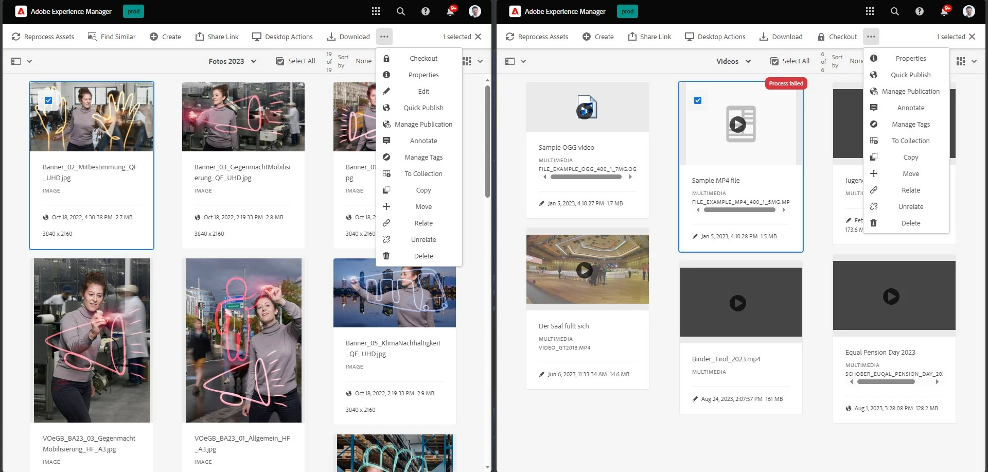 | Improved/Expected Behavior: | Our users work mostly with Sites and expect the DAM button to be at the same location, which is hardly the case. See screenshots. We would move the options that are available to all types in front and the specific ones at the end. That should ease their situation. Either this comes by default, or our admins can configure the order of button per content type. However, we would prefer to have it out of the box. |