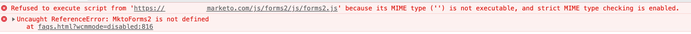 Marketo forms integration to AEMaaCS - JS not executed due to mime type