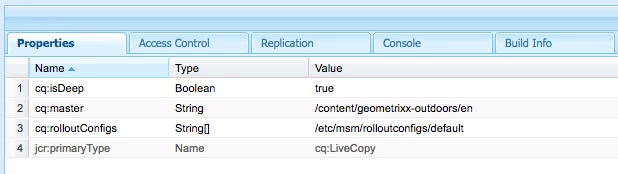 In all cases below, I changed the cq:trigger property value to "modification" on the /etc/msm/rolloutconfigs/default/jcr:content node.