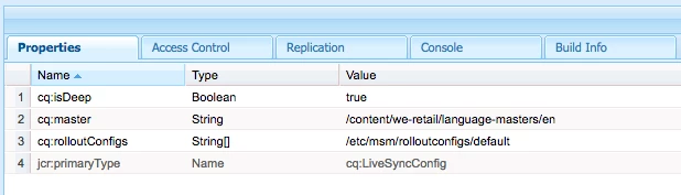 Exactly the same result as situation 3 ( which means that "jcr:primaryType" changed to cq:LiveCopy in cq:LiveSyncConfig of we-retail/ca/en )